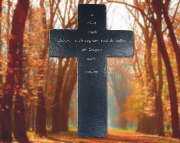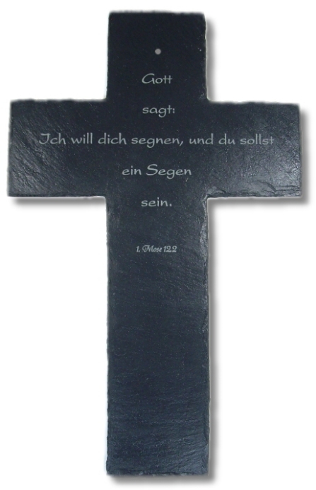 Kreuz aus Naturschiefer, handbehauene Form mit Naturkante und spaltrauher Oberfläche