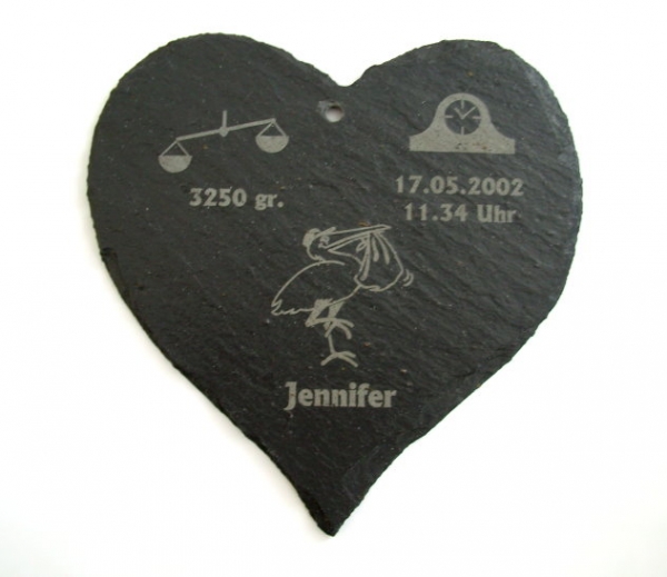mit Steinlack versiegelt und lasergraviert mit Ihren Daten zur Geburt.