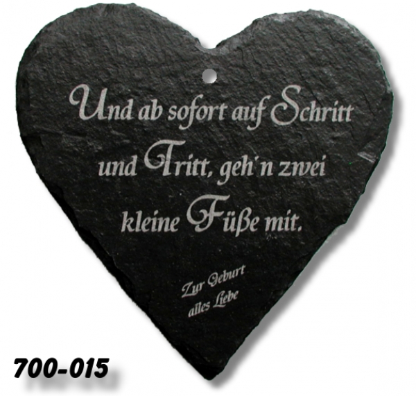 Die Gravur ist mittels Laserstrahl fest in den Schiefer eingraviert und somit auch wetterfest.