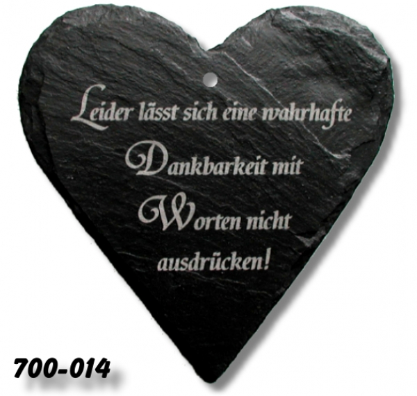 Handbehauenes Naturschiefer-Herz ca. 10x10cm oder ca. 17x17cm groß, mit Steinlack versiegelt und eingraviertem Spruch.