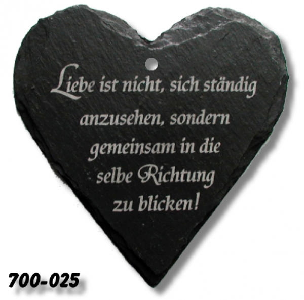 Handbehauenes Naturschiefer-Herz ca. 10x10cm oder ca. 17x17cm groß, mit Steinlack versiegelt und eingraviertem Spruch.