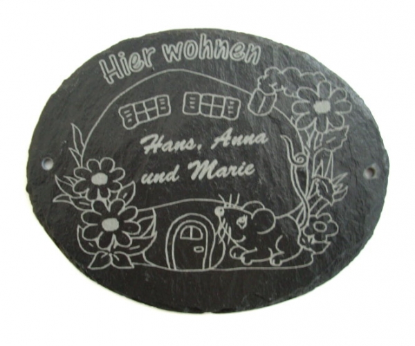 Ovaler handbehauener Schiefer im Querformat als attraktives Türschild