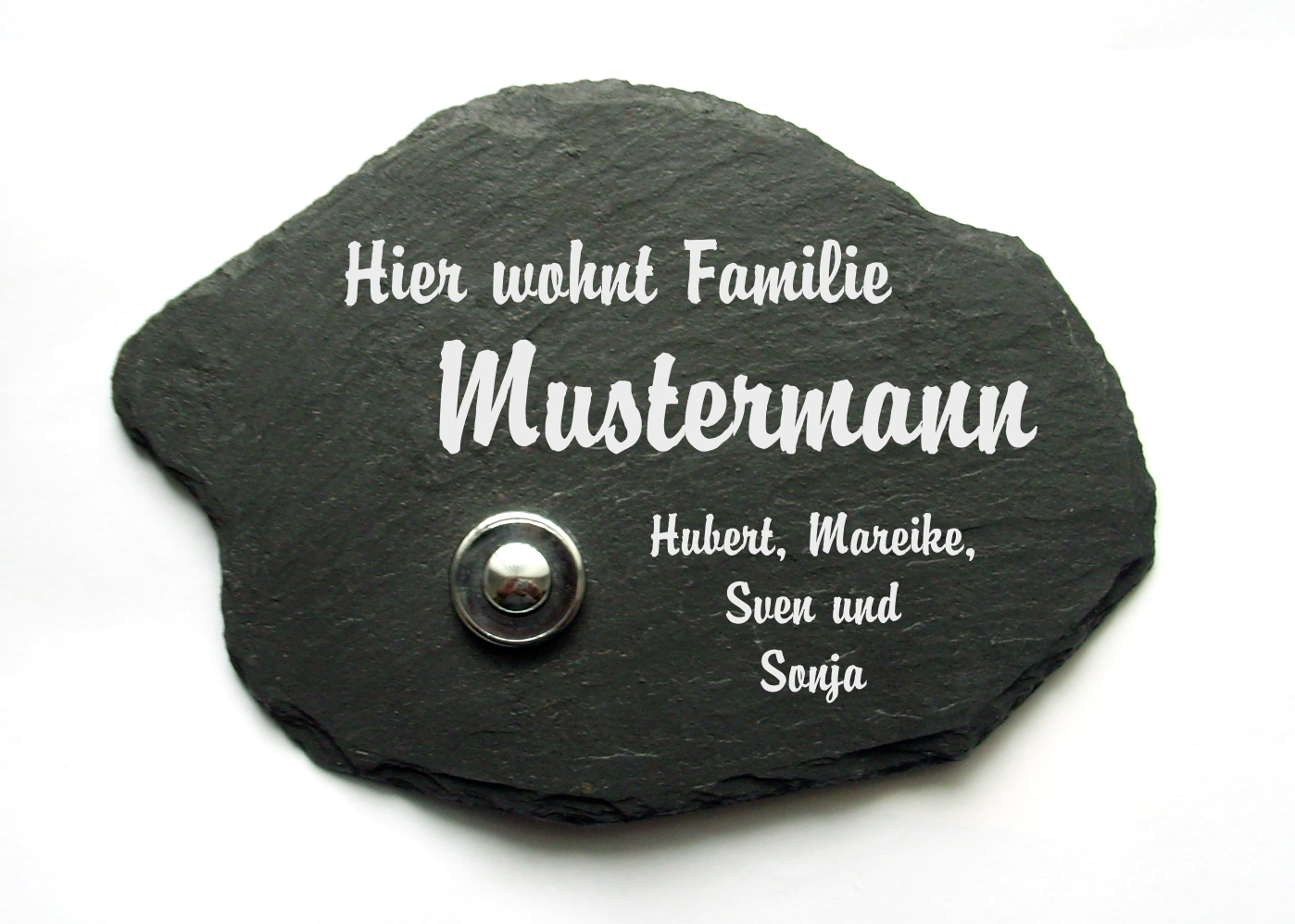 Originelles Türschild aus Naturschiefer mit Klingelknopf