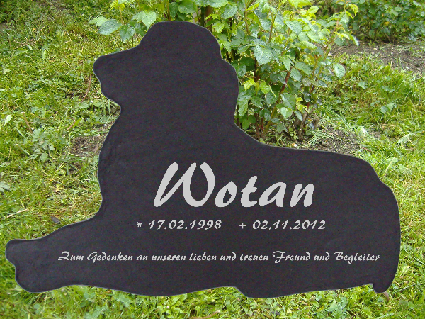 Grosser Tiergedenkstein in Hundeform aus Natur-Schiefer