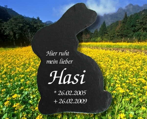 Tiergedenkstein in Hasenform aus Natur-Schiefer