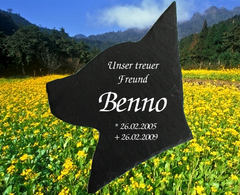 Tiergedenkstein in Hundekopf-Form aus Natur-Schiefer