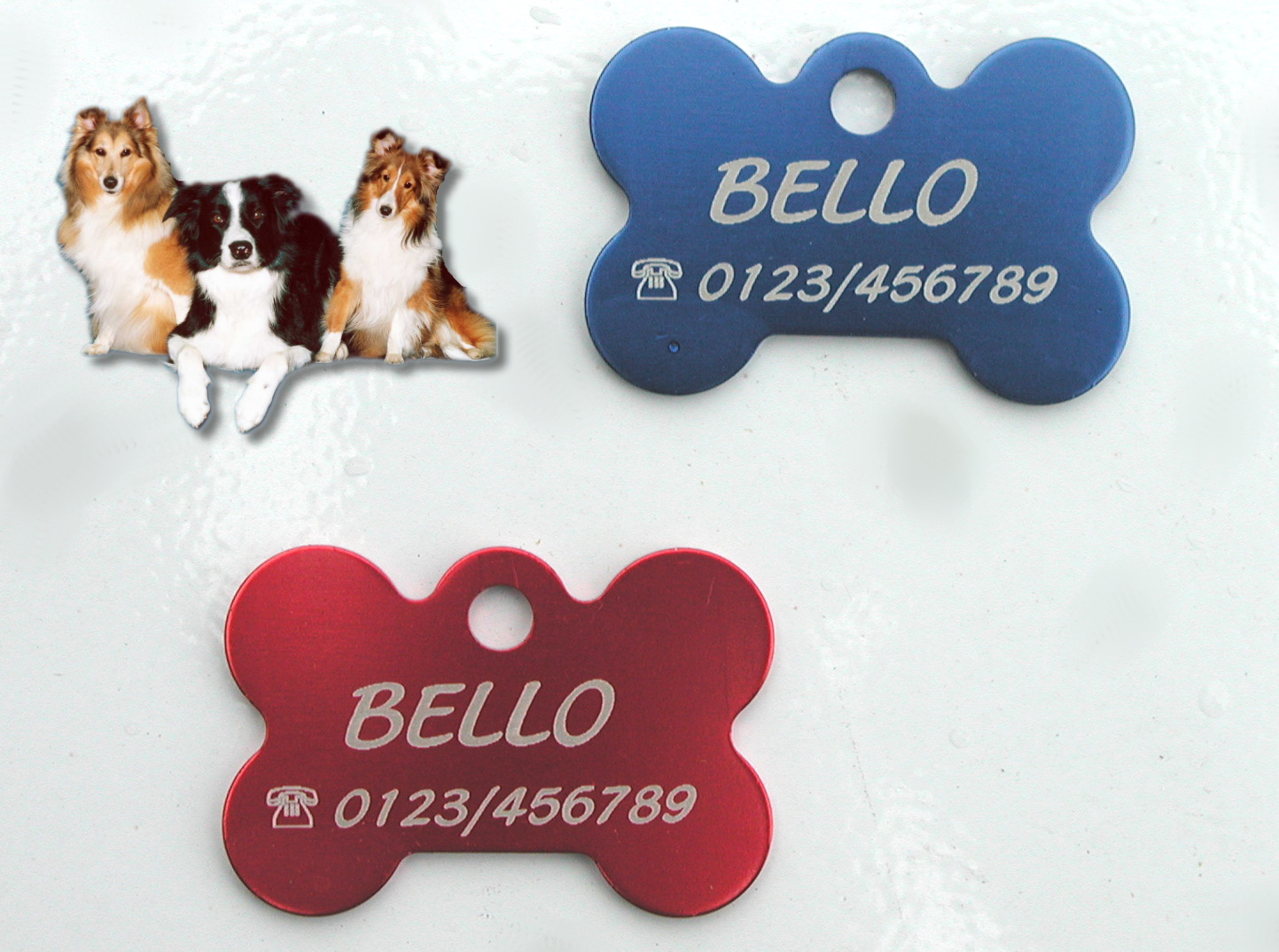 Tier-Namensanhänger aus Aluminium in Knochenform