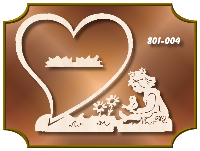 Klöppelrahmen Holz 801-004 "Gebogenes Herz mit sitz. Mädchen Aufsteller"