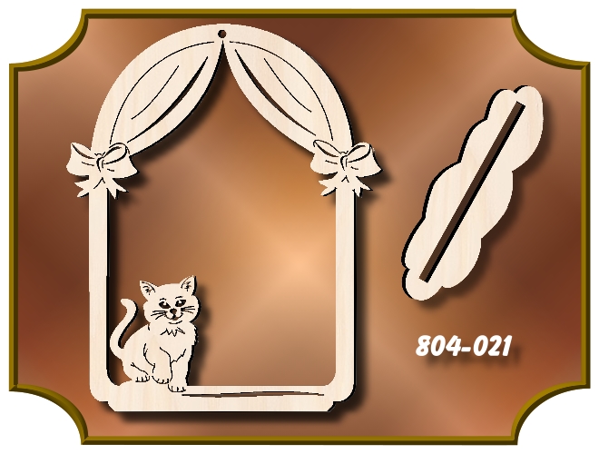 Klöppelrahmen Holz 804-021 "Bogen mit Vorhang und Katze "