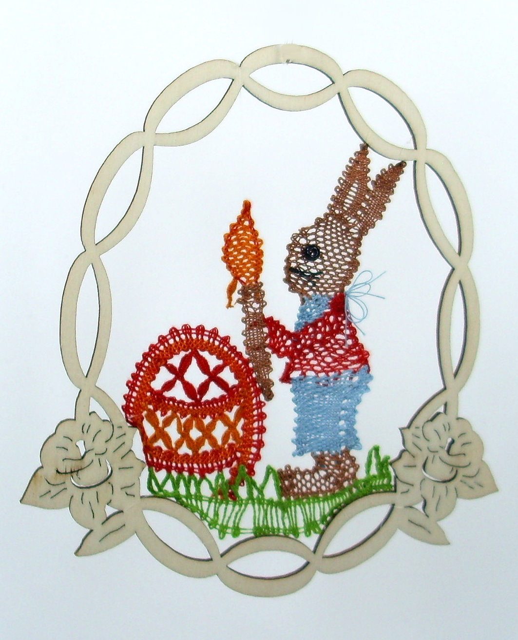 Klöppelbrief AR-184 "Malerhase im Ovalrahmen"