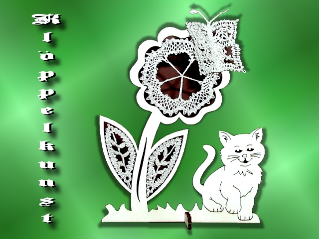 Die Abbildung zeigt eine fertige Klöppelarbeit im passenden Holzrahmen und ist nicht Bestandteil des Lieferumfanges, dieser besteht nur aus dem Klöppelbrief (Anleitung) der je nach Motiv aus einer oder mehreren Seiten bestehen kann.