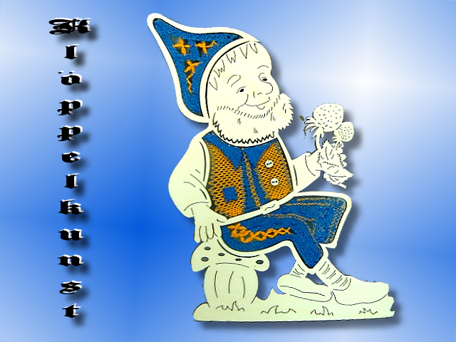 Die Abbildung zeigt eine fertige Klöppelarbeit im passenden Holzrahmen und ist nicht Bestandteil des Lieferumfanges, dieser besteht nur aus dem Klöppelbrief (Anleitung) der je nach Motiv aus einer oder mehreren Seiten bestehen kann.