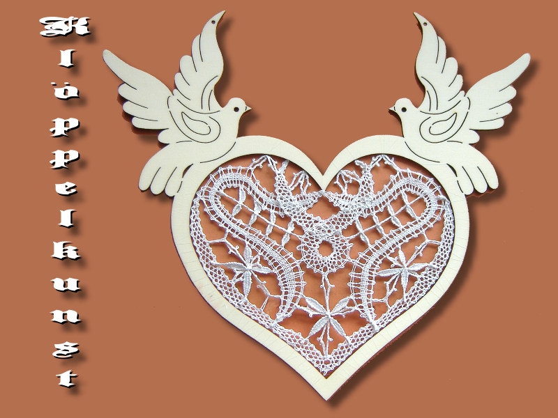 Die Abbildung zeigt eine fertige Klöppelarbeit im passenden Holzrahmen und ist nicht Bestandteil des Lieferumfanges, dieser besteht nur aus dem Klöppelbrief (Anleitung) der je nach Motiv aus einer oder mehreren Seiten bestehen kann.