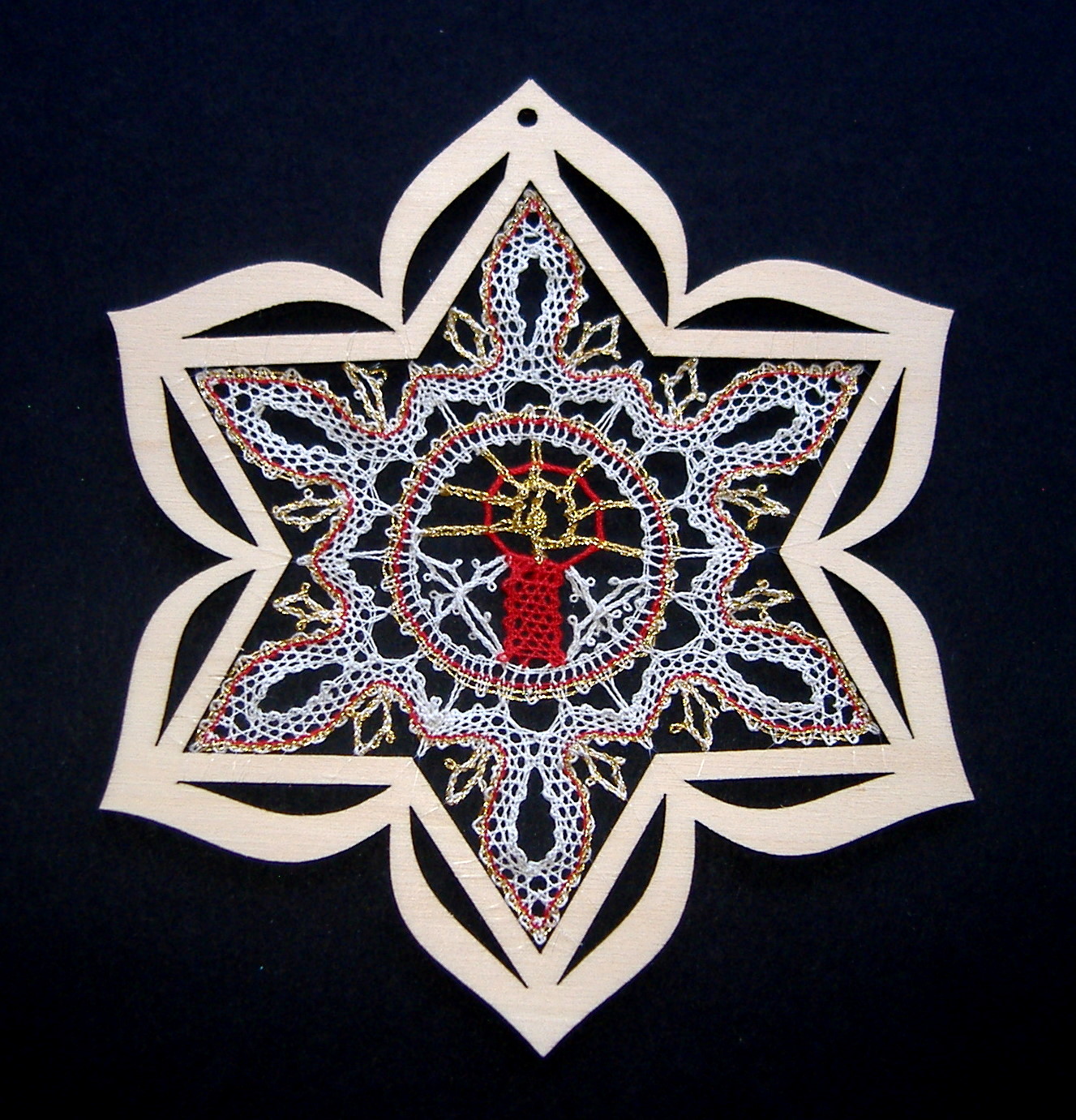 Die Abbildung zeigt eine fertige Klöppelarbeit im passenden Holzrahmen und ist nicht Bestandteil des Lieferumfanges, dieser besteht nur aus dem Klöppelbrief (Anleitung) der je nach Motiv aus einer oder mehreren Seiten bestehen kann.