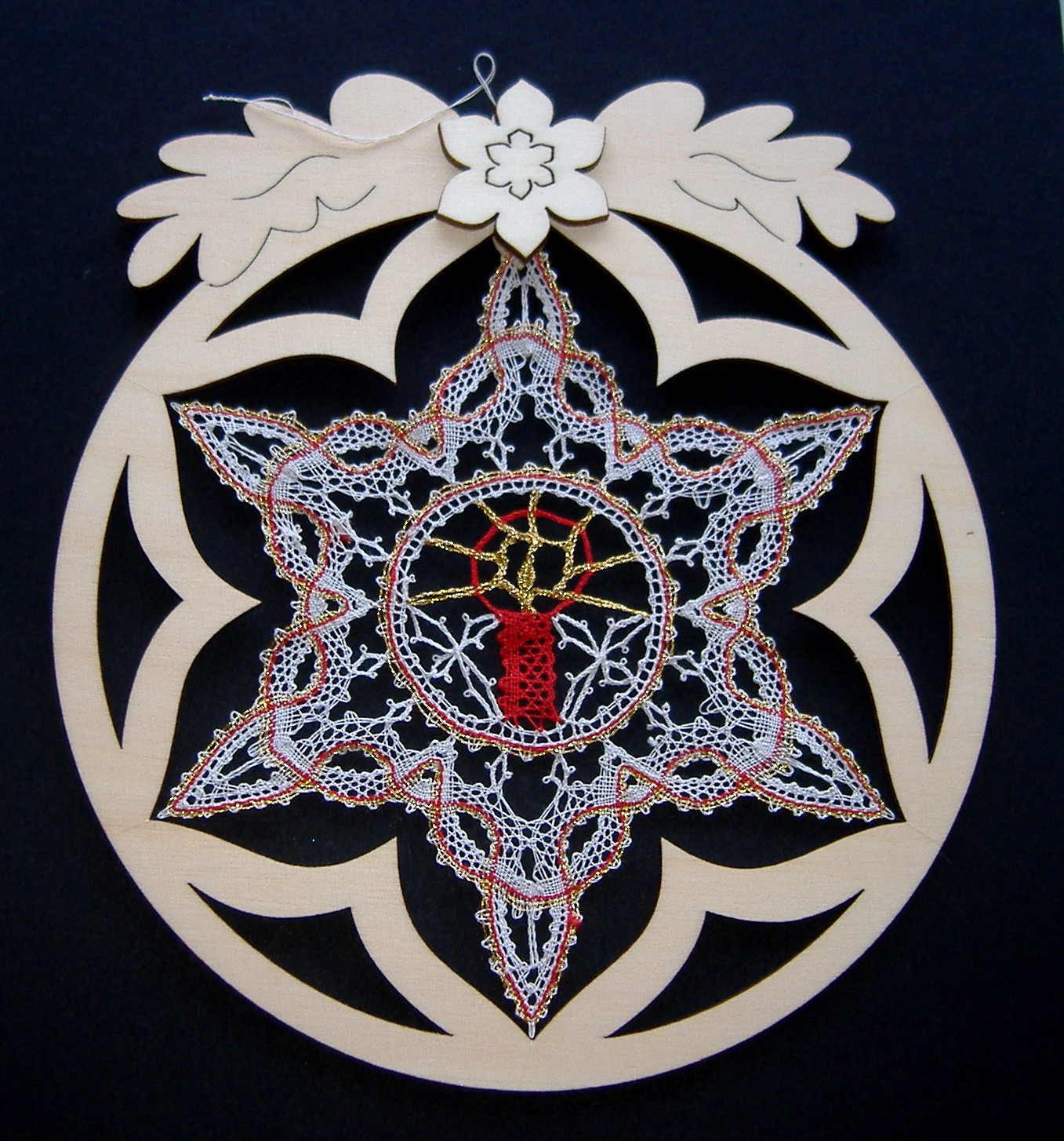 Die Abbildung zeigt eine fertige Klöppelarbeit im passenden Holzrahmen und ist nicht Bestandteil des Lieferumfanges, dieser besteht nur aus dem Klöppelbrief (Anleitung) der je nach Motiv aus einer oder mehreren Seiten bestehen kann.